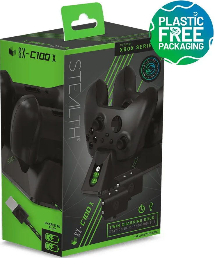 Док станция Xbox Series X +2 акк. Twin Charger Dock Stealth SX-C100X: Это аксессуар, разработанный специально для хранения и зарядки беспроводных контроллеров Xbox Series X и Xbox Series S. Станция оснащена двумя зарядными отсеками, что позволяет одновременно заряжать два контроллера. Это особенно удобно, если вы играете в игры с друзьями или семьей. Док станция выполнена из прочного пластика, что гарантирует долговечность и надежность в использовании. Зарядка осуществляется с помощью зарядного кабеля USB длиной 1 метр. Это позволяет заряжать контроллеры на расстоянии от док станции, что делает процесс зарядки более удобным и гибким. Выбирая данную док станцию, вы получаете надежное и удобное решение для хранения и зарядки ваших контроллеров Xbox Series X и Xbox Series S. В комплект входят 2 мощных перезаряжаемых аккумуляторных батареи для XBOX Series X и Series S. Питание от USB-C с помощью съемного плетеного кабеля для зарядки длиной 1 м. Стильная световая полоса на 360 градусов с эффектом пульсации. Светодиодный индикатор зарядки наглядно показывает уровень заряда. Матовый дизайн с зеленой и черной отделкой
